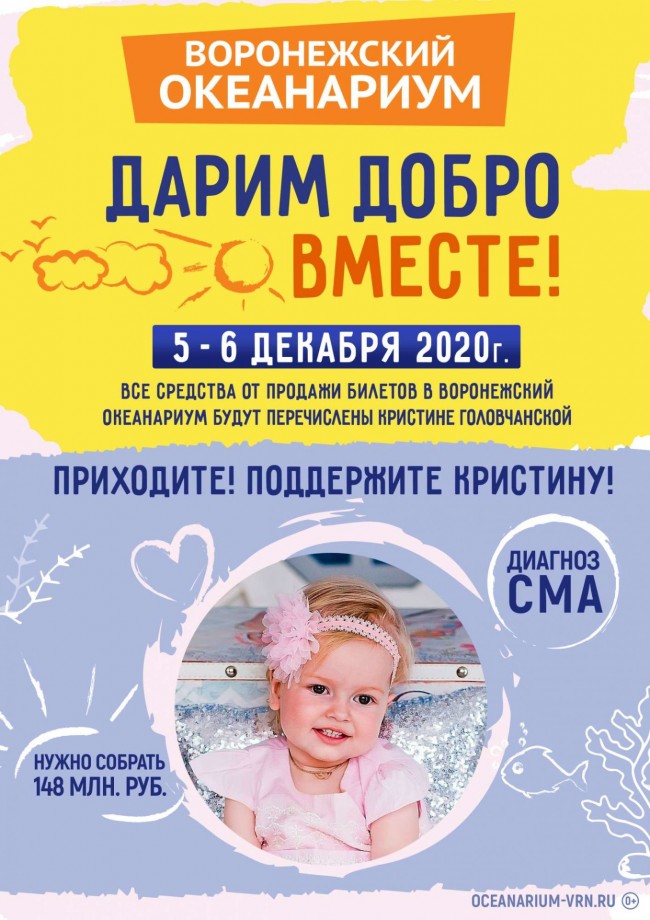 Срок на сбор денег для Кристины ограничен. По инструкции, укол необходимо сделать до того, как ребенку исполнится два года - в январе 2021 года. У всех горожан есть уникальная возможность объединиться и спасти жизнь маленькой девочки, нашей землячки! 5 и 6 декабря мы ждем воронежцев семьями, с детьми и друзьями. Присоединяйтесь, чтобы вместе помочь Кристине. Все средства, заработанные в эти выходные, будут направлены родителям малышки.