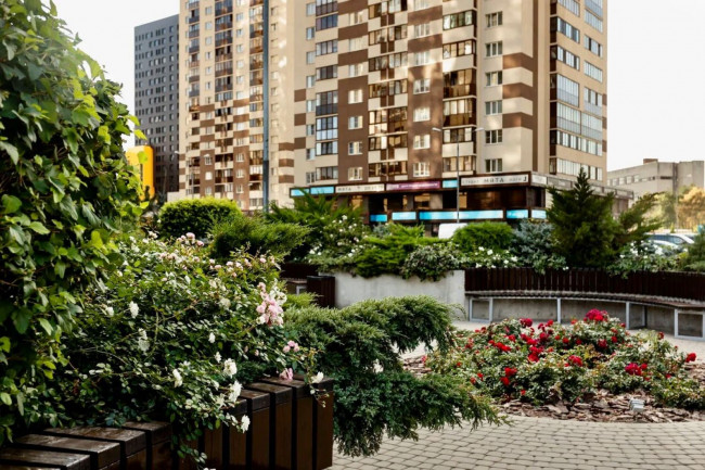 Внутридомовое обустройство жилого комплекса «Пять звезд» представляет собой многофункциональную территорию с зелеными островками, которые наполнены огромным разнообразием растений. Поэтому уже сейчас многие их называют мини-дендрариями.